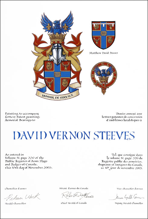 MottoBlazonHONOUR IN SERVICE; SymbolismHONOUR IN SERVICE expresses an important aspect of Mr. Steeves’ personal philosophy. |
