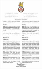 Additional InformationCreator(s)Not Available. PainterCourt of the Lord Lyon, Edinburgh / Cour du roi d’armes Lord Lyon, Édimbourg CalligrapherNot applicable Recipient TypeIndividual Other InformationThe recipient’s emblems were originally recorded in the records of the Court of the Lord Lyon, Edinburgh, Scotland, 1 September 1959. |