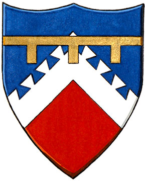 Arms of Robert Michael CulbertsonBlazonPer chevron Azure and Gules a chevron its upper edge dovetailed Argent; SymbolismRed, white and blue are the colours of Mr. Culbertson’s favourite sports team, the Montréal Canadiens. They are also the colours of Jarvis Collegiate Institute, Toronto, his secondary school. The dovetailed chevron refers to Mr. Culbertson’s participation in Habitat for Humanity and Volunteer Builders. The chevron itself alludes to a Masonic square, used by the Ancient Free and Accepted Masons, and alludes to his time as a Worshipful Master of Coronati Lodge #520. |