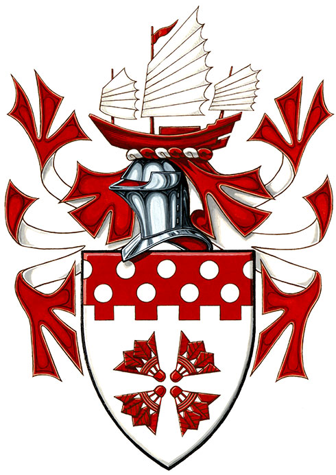 CrestBlazonA three-masted Chinese junk Gules sails unfurled Argent; SymbolismThe Chinese junk has long been known for its efficiency as a strong, safe and speedy vessel, leading some historians to describe it as a laboratory for innovative techniques. It therefore symbolizes Mr. Chow’s love of efficiency and structure, as well as his work in medical research. |