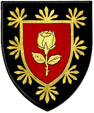 Differenced Arms for Janida Celia Hart, child of Assa DisengomokaBlazonThe Arms of Assa Disengomoka debruised of a rose slipped and leaved Or in place of the bezant couped; SymbolismThe rose symbolizes her love for peace and her ability to protect herself in the same way that a rose does with its thorns. |