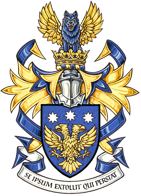 MottoBlazonSE IPSUM EXTOLLIT QUI PERSTAT; SymbolismMeaning “He elevates himself who perseveres,” this Latin phrase speaks to the challenges faced by Mr. Brazeau and his ancestors, and how each generation has overcome them. With this motto, Mr. Brazeau encourages his own descendants to press onwards through adversity with tenacity. |