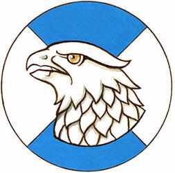 Badge of Ian Leslie MacdonaldBlazonOn a roundel per saltire Azure and Argent an eagle’s head couped Argent; SymbolismThe disc’s division represents a camera lens capturing an image. Blue and white are prominent colours in the Badge of the 48th Highlanders, which features a falcon’s head. Together, they symbolize Mr. Macdonald’s role as the regimental photographer. |