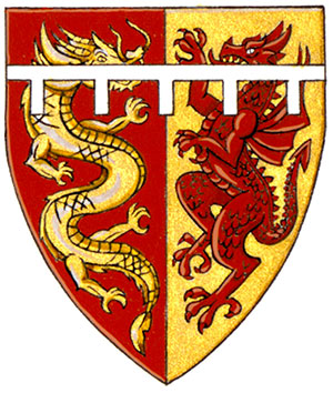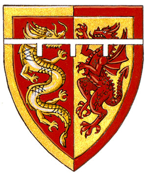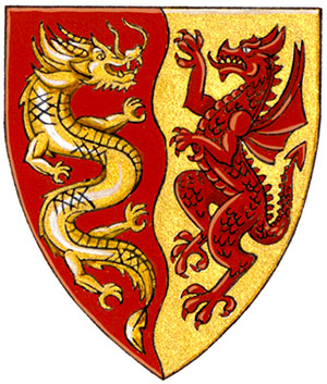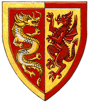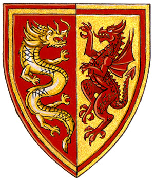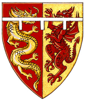 Arms of Brandt Channing LouieBlazonPer pale Gules and Or, a Chinese dragon and a dragon combatant counterchanged; SymbolismRed and gold is a colour combination associated with Chinese culture and thus alludes to Mr. Louie’s ancestry. The Chinese and western dragons, along with the division of the shield, symbolize the balance of Chinese and western cultures in his life. |