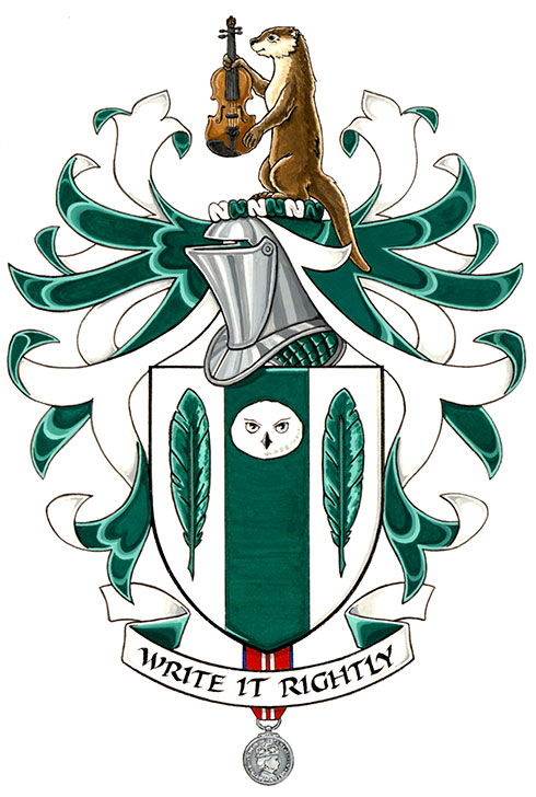 CrestBlazonA river otter sejant erect holding a violin proper; SymbolismAs an aquatic creature, the river otter represents Mr. McClinchey’s role as the legislative liaison for the Great Lakes Fishery Commission. The violin signifies that music has been an important feature of family gatherings for several generations. |