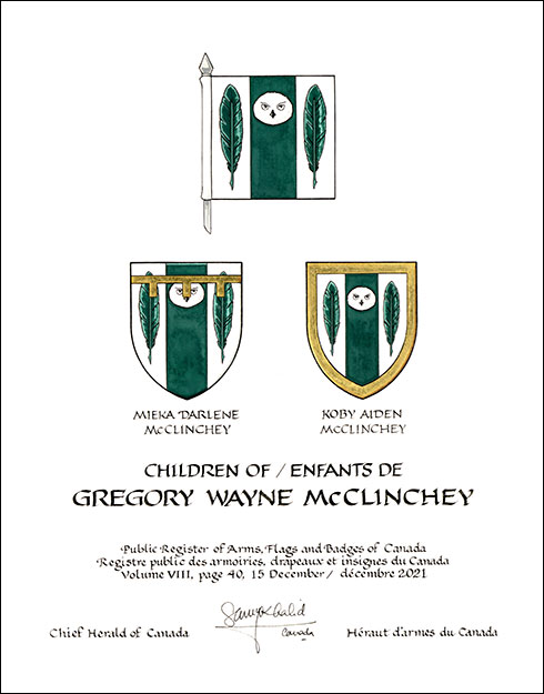 Grant of Arms and Flag, with differences to Mieka Darlene McClinchey and Koby Aiden McClinchey