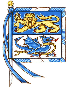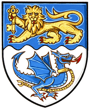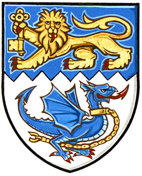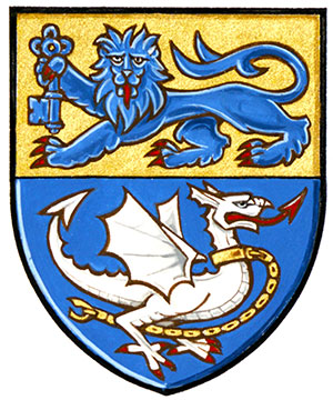 Arms of Frédéric BernierBlazonPer fess Azure and Argent, in chief a lion passant guardant holding in its dexter paw a key bow in chief Or, in base a wyvern passant contourné Azure collared and chained Or; SymbolismFor Dr. Bernier, the juxtaposition of the lion and the wyvern represents the eternal struggle between one’s ideals and temptations. Blue represents water, while white embodies the purity of ideals and gold symbolizes strength and loyalty. The key alludes to the importance of learning and, therefore, Dr. Bernier’s role as a university professor. The four loops on the key represent his wife and three children. |