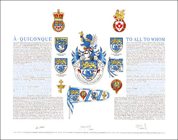 Additional InformationCreator(s)Original concept of Frédéric Bernier, assisted by the heralds of the Canadian Heraldic Authority. PainterDebra MacGarvie CalligrapherDoris Wionzek Recipient TypeIndividual |