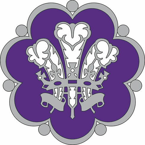 Badge of The Prince Charles, Prince of WalesBlazonA septafoil reversed Purpure edged, set with seven pearls between its arches Argent and charged with three ostrich feathers proper enfiling a coronet of crosses patté and fleurs-de-lis Argent jewelled Purpure and interlaced in base with a scroll Argent; SymbolismThe central device of the ostrich feathers encircled by a coronet is a simplified rendition of the heraldic badge of The Prince of Wales. The seven-lobed figure and seven pearls reproduce the perimeter of the Canadian emblem of Her Majesty’s Platinum Jubilee, celebrating the seven decades of Queen Elizabeth II’s reign. |