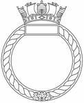 Badge Frame for Ships and Naval Reserve Divisions of the Canadian Armed ForcesBlazonAn annulus charged with a rope Or issuant in chief from a billet fesswise [colour] edged Or inscribed with the name of the unit in letters [colour] and surmounted in base by three maple leaves, all ensigned by a naval crown Or its sails Argent; SymbolismMost badges of the Canadian Armed Forces are enclosed within badge frames to permit quick visual identification of a unit's type and function. This is one of the badge frames used as part of the primary badges. |