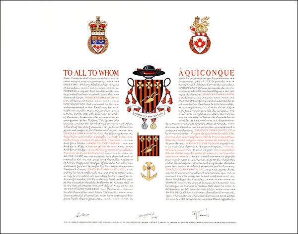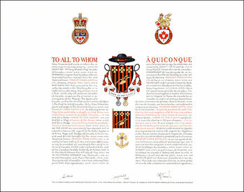 Additional InformationCreator(s)Original concept of Bradley Smith and Bruce Patterson, Deputy Chief Herald of Canada, assisted by the heralds of the Canadian Heraldic Authority. PainterPalina Klimava CalligrapherDoris Wionzek Recipient TypeIndividual |
