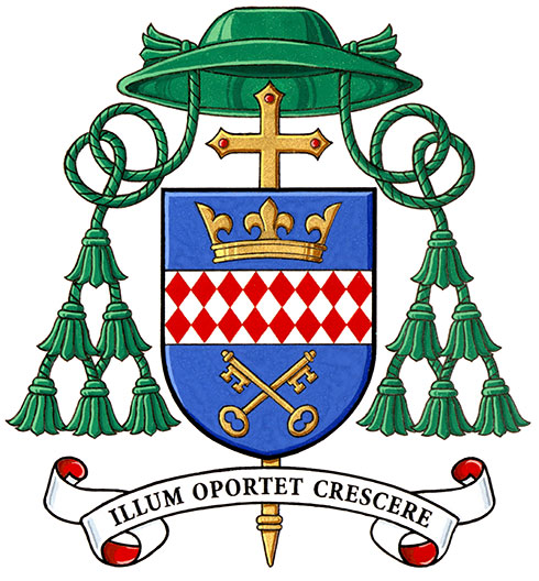 MottoBlazonILLUM OPORTET CRESCERE; SymbolismThis Latin phrase, meaning “He must increase” [i.e., become greater], is taken from John 3:30, “He must increase, but I must decrease.” It is said by John the Baptist to his followers after he baptized Jesus. |