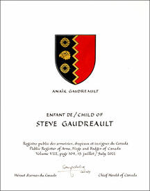 Grant of Arms, Flag and Badge, with differences to Anaïk Gaudreault
