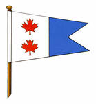 Flag of the Canadian Coast GuardBlazonA swallow-tailed pennant per pale Argent and Azure, in hoist two maple leaves in pale Gules; Symbolism(Assistant Commissioner) The swallow-tailed shape is a version of the Commissioner’s rectangular flag. The red maple leaves on white and the blue section are elements found in other flags of the Canadian Coast Guard. |