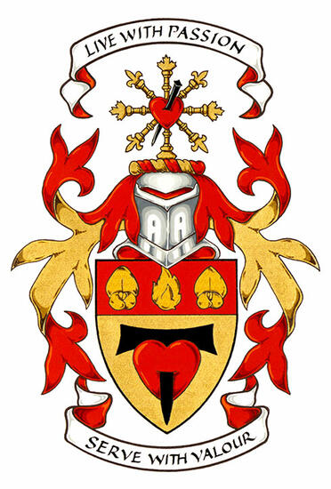 MottoBlazonLIVE WITH PASSION; SymbolismThis phrase connects to the Passion nail in the Crest. |