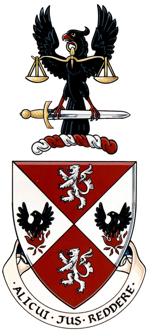 MottoBlazonALICUI JUS REDDERE; SymbolismThis Latin phrase, literally meaning “Render justice to anyone,” alludes to Mr. Feldman’s position as a justice of the peace. It has been used by Mr. Feldman to represent the idea of giving to all what is due to them. |
