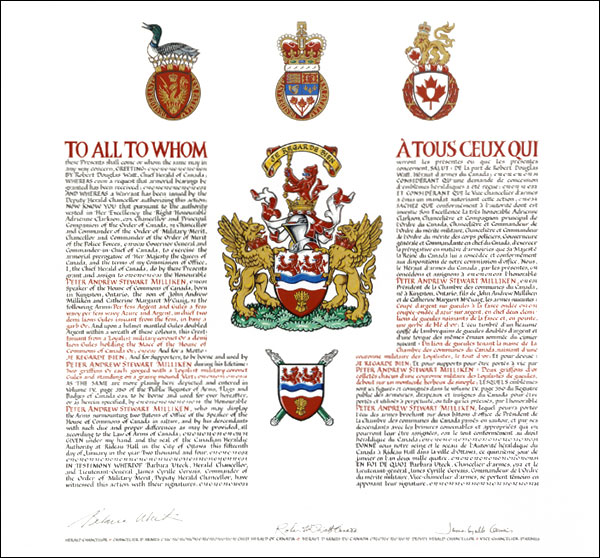 Additional InformationCreator(s)Original concept of Robert D. Watt, Chief Herald of Canada, assisted by the Heralds of the Canadian Heraldic Authority PainterGordon Macpherson CalligrapherNancy Ellis Recipient TypeIndividual |