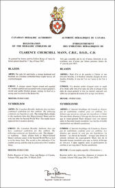 Additional InformationCreator(s)Original concept of the College of Arms, London. PainterArtist of the College of Arms, London / Artiste du Collège d’armes, Londres CalligrapherNot applicable Recipient TypeIndividual Other InformationThe recipient’s emblems were originally recorded at the College of Arms, London, England, 1 June 1967. |