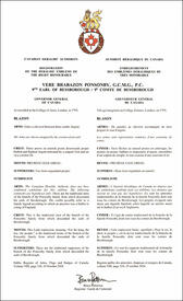 Additional InformationCreator(s)Not available. PainterArtist of the College of Arms, London / Artiste du Collège d’armes, Londres CalligrapherNot applicable Recipient TypeIndividual Special DesignationGovernor General Other InformationThe recipient’s emblems were originally recorded at the College of Arms, London, England, in 1795. The acquisition of this painting has been sponsored by the Royal Heraldry Society of Canada. |