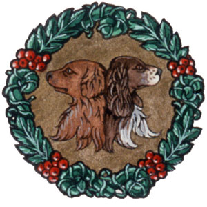 Badge of Thomas Ross Anthony MalcolmBlazonOn a bezant encircled by fiddleheads and sprigs of mountain ash fructed, a Brittany Spaniel's head and an English Springer Spaniel's head erased and addorsed proper; SymbolismThe mountain ash (Sorbus aucuparia) is the Malcolm clan badge, and the fiddlehead is the provincial plant of New Brunswick, the province in which Mr. Malcolm's grandfather settled after leaving Scotland. The two canine breeds are those particularly admired by Mr. Malcolm and his family, and they reflect the use of hunting dogs by several generations of his family. |