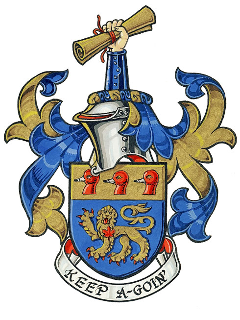MottoBlazonKEEP A-GOIN'; SymbolismKEEP A-GOIN’ is taken from the last line of each stanza of a poem of the same name by Frank A. Stanton, found by Mr. Hickey as a framed copy amongst his grandfather’s effects. He has found the simple wording and sentiment helpful during challenging times. |