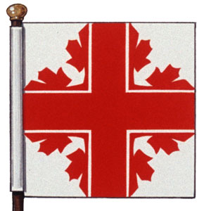 SupportersBlazonDexter a lion, sinister a bear, each Argent and gorged with a collar of maple leaves Gules and standing on a grassy mound Vert set with maple leaves, maple seeds, oak leaves and acorns Or; SymbolismThe lion makes a reference to England, and the bear is based on one of the supporters of the arms of the City of Toronto, and is thus a local reference. Their collars of maple leaves repeat the symbolism of the arms. The oak leaves, acorns, and maple seeds on the ground further combine Canadian and English symbolism, with indications of renewal. |