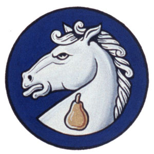 CrestBlazonA horse's head Argent gorged with a collar of pear leaves Azure; SymbolismThe horse head symbolizes Mr. Peerenboom's love of horses and his stables. The pear leaves make another reference to the surname. |