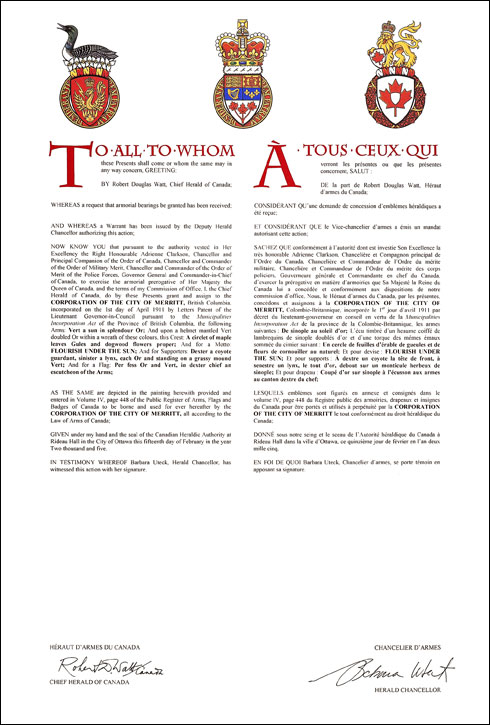 Additional InformationCreator(s)Original concept by Heinz Lange and Patrick Lean, assisted by Robert D. Watt, Chief Herald of Canada, and the Heralds of the Canadian Heraldic Authority PainterLinda Nicholson CalligrapherDoris Wionzek Recipient TypeCivil Institution
