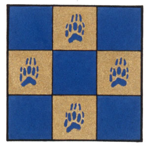 Arms of Robert James Sinclair GibsonBlazonChequy of nine Azure and Or, four badger paw prints Azure; SymbolismThe "chequy" design is a traditional symbol of financial stewardship and therefore refers to Mr. Gibson's career. The badger is a particular symbol associated with Mr. Gibson's Cree heritage and also refers to the badger sporran of the Calgary Highlanders Regiment of which he is the Honorary Colonel. |