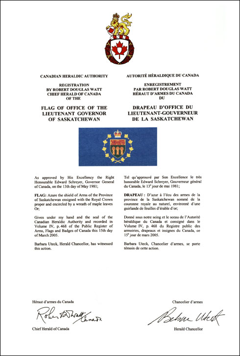 The contents of this Register are intended for research purposes only. The heraldic emblems found in the Register may not be reproduced in any form or in any media without the written consent of the Canadian Heraldic Authority and/or the recipient.