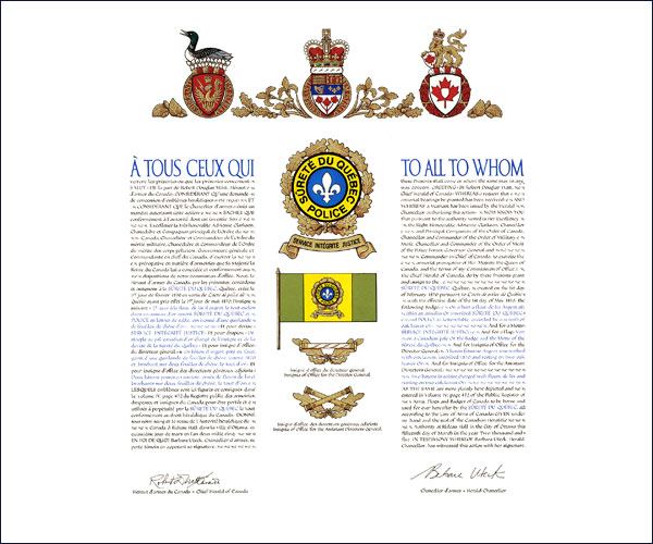 Additional InformationCreator(s)Original concept of Claire Boudreau, Saint-Laurent Herald, assisted by the Heralds of the Canadian Heraldic Authority PainterDavid Farrar CalligrapherShirley Mangione Recipient TypeCivil Institution