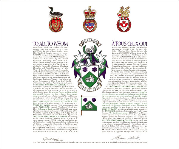 Additional InformationCreator(s)Original concept of Bruce Patterson, Saguenay Herald, assisted by the Heralds of the Canadian Heraldic Authority PainterIlona Jurkiewicz CalligrapherHeather Taylor Recipient TypeCivil Institution