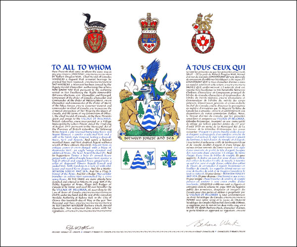 Additional InformationCreator(s)Original concept of Robert D. Watt, Chief Herald of Canada, assisted by the Heralds of the Canadian Heraldic Authority PainterLinda Nicholson CalligrapherNancy Ellis Recipient TypeCivil Institution