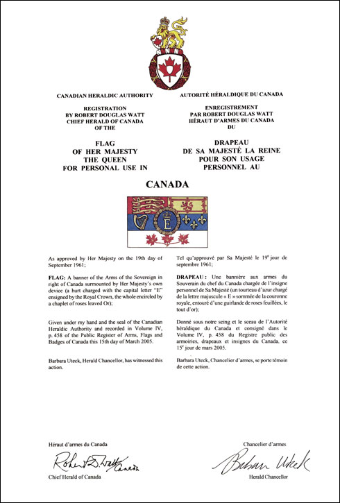 Registration of the Flag of Her Majesty the Queen for personal use in Canada