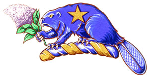 Crest of Marc Edward SmithBlazonA beaver sejeant Azure armed Argent charged on the shoulder with a mullet Or holding in the dexter forepaw a panicle of lilac (Syringa vulgaris) Purpure leaved and slipped Vert; SymbolismThe beaver alludes to the birthplace of Fr. Smith’s father, Beaver Dam, New Brunswick. The mullet refers to his mother, Aline Clement, a descendent of an Acadian expelled from Nova Scotia in 1756. The purple lilac is the state flower of New Hampshire, from whence Fr. Smith’s loyalist ancestor, Andrew Smith, immigrated to Canada. |