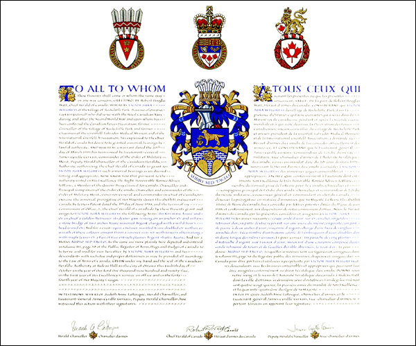Additional InformationCreator(s)Original concept by Robert D. Watt, Chief Herald of Canada, assisted by the Heralds of the Canadian Heraldic Authority PainterJoan Bouwmeester CalligrapherJoan Bouwmeester Recipient TypeIndividual |
