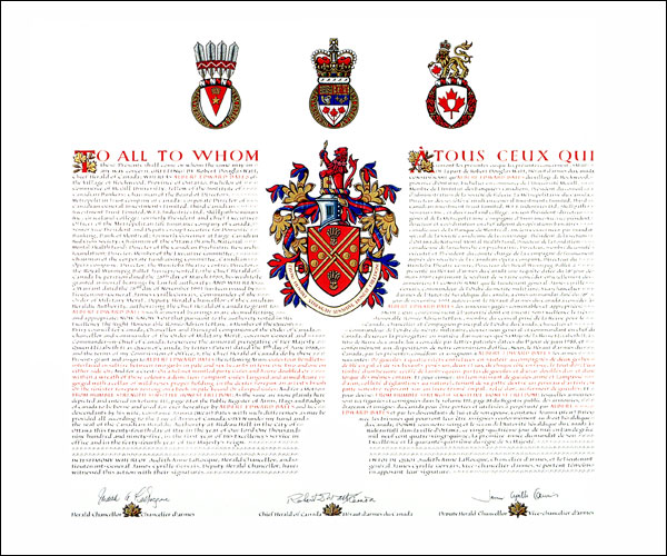 Additional InformationCreator(s)Original concept of Robert D. Watt, Chief Herald of Canada, assisted by the Heralds of the Canadian Heraldic Authority PainterJoan Bouwmeester CalligrapherJoan Bouwmeester Recipient TypeIndividual |