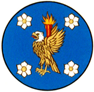 Badge of the British Columbia Institute of TechnologyBlazonOn a hurt between four dogwood flowers Argent seeded Or an eagle Or head Argent beak Or issuant between its wings elevated and addorsed a torch Gules enflamed Or; SymbolismThe symbolism of this emblem is found in other element(s) of this record. |