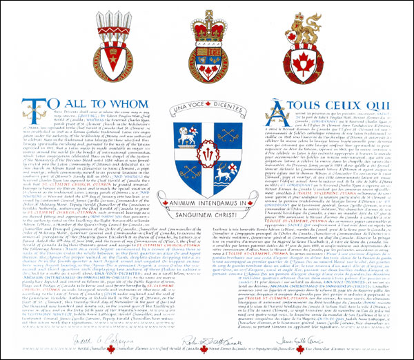 Additional InformationCreator(s)Original concept of Auguste Vachon, Saint-Laurent Herald, assisted by the heralds of the Canadian Heraldic Authority. PainterHans Birk CalligrapherJudith Bainbridge Recipient TypeCivil Institution