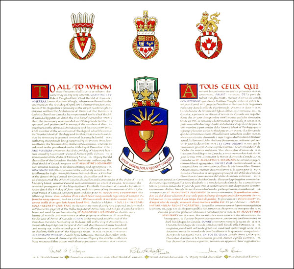 Additional InformationCreator(s)Original concept of Robert D. Watt, Chief Herald of Canada, assisted by the heralds of the Canadian Heraldic Authority. PainterDavid Farrar CalligrapherSuzzann Wright Recipient TypeCivil Institution