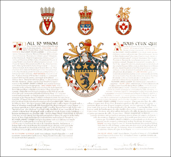 Additional InformationCreator(s)Original concept of Roger Lindsay, assisted by the heralds of the Canadian Heraldic Authority. PainterDebra MacGarvie CalligrapherSuzzann Wright Recipient TypeIndividual |