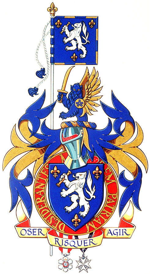 MottoBlazonOSER • RISQUER • AGIR, meaning "Dare • Risk • Act"; |