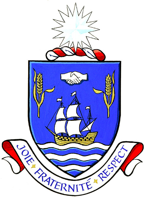 MottoBlazonJOIE • FRATERNITÉ • RESPECT, meaning "Joy • Brotherhood • Respect"; |