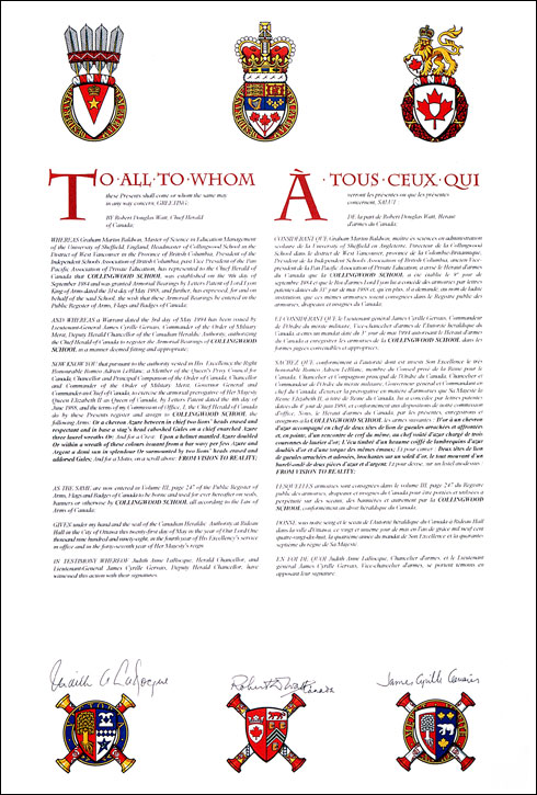 The contents of this Register are intended for research purposes only. The heraldic emblems found in the Register may not be reproduced in any form or in any media without the written consent of the Canadian Heraldic Authority and/or the recipient.