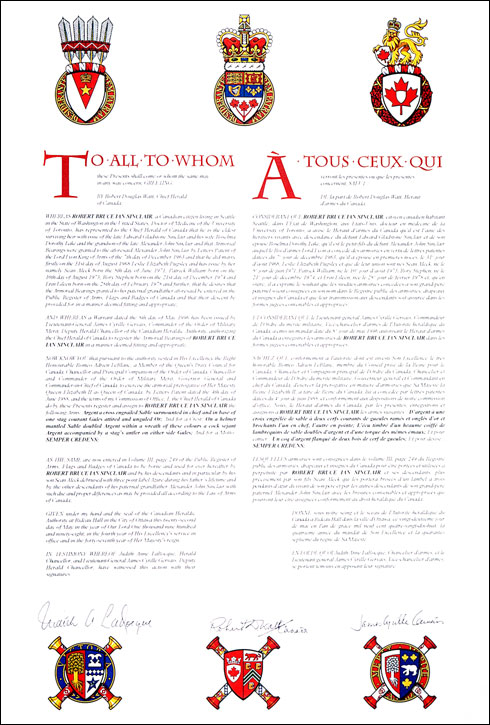 The contents of this Register are intended for research purposes only. The heraldic emblems found in the Register may not be reproduced in any form or in any media without the written consent of the Canadian Heraldic Authority and/or the recipient.