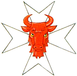 Arms of Corneliu Emil Eugen ChisuBlazonAzure a Maltese cross Argent surmounted by a bull's head caboshed Gules between in the first and fourth quarters the sun in splendour Or and in the second and third a sword fessways hilt to the dexter surmounted by an increscent Argent; |