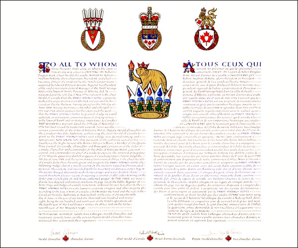 Additional InformationCreator(s)Original concept of Robert D. Watt, Chief Herald of Canada, assisted by the heralds of the Canadian Heraldic Authority. PainterJoan Bouwmeester CalligrapherJoan Bouwmeester Recipient TypeCivil Institution |
