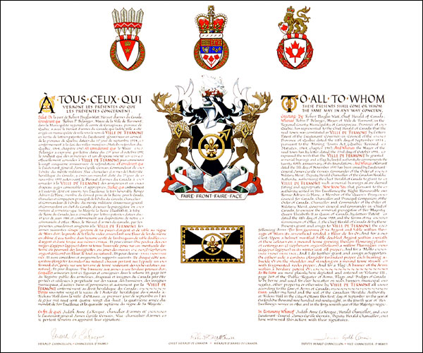 Additional InformationCreator(s)Original concept of Pierre Gotié, assisted by the heralds of the Canadian Heraldic Authority. PainterLinda Nicholson CalligrapherNancy Ellis Recipient TypeCivil Institution