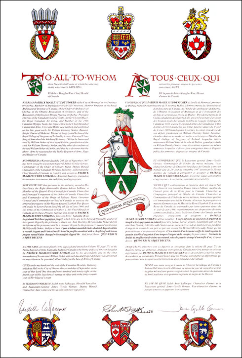 The contents of this Register are intended for research purposes only. The heraldic emblems found in the Register may not be reproduced in any form or in any media without the written consent of the Canadian Heraldic Authority and/or the recipient.