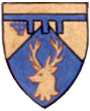 Arms of Lester Henry McWhinnieBlazonPer chevron Or and Azure a Celtic cross in canton a stag's head erased in base counterchanged of the field; |